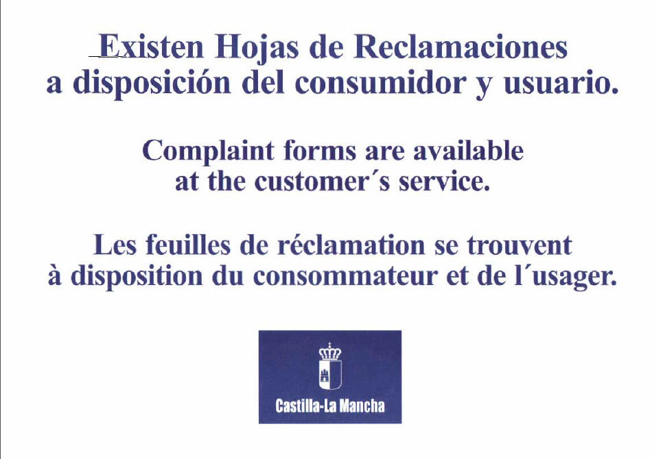 Así mismo, todos los establecimientos tiene que exhibir al público de manera permanente y visible el cartel anunciador de la existencia de hojas de reclamaciones.